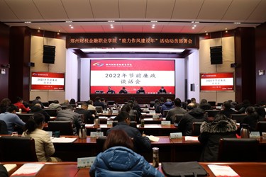新年伊始,为持续加强纪律和作风建设,警示教育党员干部廉洁过节,鼓舞干劲斗志昂扬的迈向新征程,1月3日,在厚德楼二楼学术报告厅,郑州财税金融职业学院召开年终总结大会暨2022年节前廉政谈话会,党委书记王霄鹂向全体中层干部做了廉政谈话。