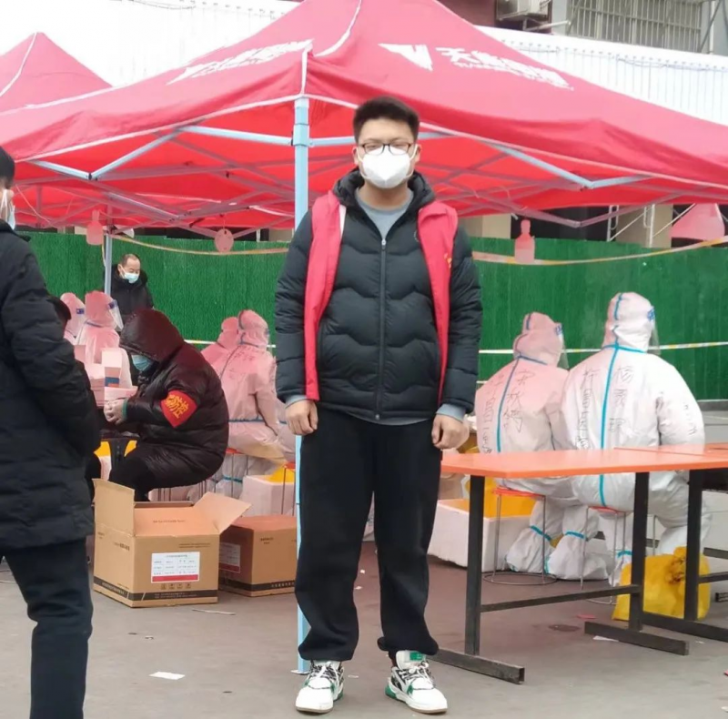 宋金洋,2021级临床医学2班学生。1月初,禹州市发出确诊新冠肺炎病例2例的通告。宋金洋第一时间与几名大学生组成了大学生志愿者团队,在社区干部的带领下,做好防护,穿上马甲,在主干道交叉口进行值守。在全市开启全民核酸检测,医护人员人手不足的紧急情况下,作为医学生的宋金洋经过培训又加入到了核酸检测的队伍中。宋金洋表示,做志愿者虽然每天都很忙碌,但我真切体会到了医务工作者的辛苦,我会更加努力学习专业知识,锤炼专业技能,在祖国需要我,家乡需要我的时候,贡献自己的力量。