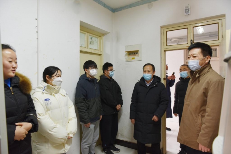 1月25日,河南科技学院校党委书记周志远,校党委副书记、工会主席苗双虎,在党委学工部 学生处、研工部 研究生处、后勤服务中心等部门负责人的陪同下,走访慰问因疫情原因不能正常离校的留校学生。