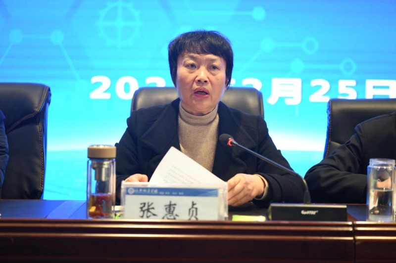 张惠贞在讲话中指出,2021年学校取得了令人振奋的办学成绩,十分不易、成之惟艰。这既为新一年的工作打下了良好基础,同时也意味着要承担更大的任务和使命。各单位要按照本次会议部署和本年度学校党政工作要点,认真抓好各项工作任务的落地落实。就扎实推进今年学校重点工作,她要求:一是坚定信心,接续奋斗,勠力同心谋发展。要提高站位,凡事讲政治,党员干部要善于从讲政治的高度看待问题、分析问题、解决问题,深刻领会“两个确立”的决定性意义,学懂弄通做实习近平新时代中国特色社会主义思想,自觉落实立德树人根本任务,在办学治校过程中不断提升政治能力。要肯定成绩,接续再奋斗,在思想上保持清醒,在行动上更加坚决,坚定信心、推动学校不断取得新成绩、实现新突破。要拉高标杆,重干求实效,领导干部发挥好“头雁”作用和示范表率作用,勇于担责担难担险,力戒官僚主义。二是重点突出、精准发力,以点带面促发展。要以硕士学位授予单位和“示范校”建设为中心,精准把握硕士学位授予单位和“示范校”建设的指标要求,对标对表,细化措施,出实招见真章,持续发力,加压奋进。要以接受省委政治巡视为契机,全面加强党的建设,坚决贯彻落实中央和省委的决策部署,全面从严治党,营造风清气正的政治生态。要以开展“能力作风建设年”活动为抓手,把提升能力、锤炼作风与党风廉政建设结合起来,与学校中心工作结合起来,与群众的“急难愁盼”结合起来,持续转作风、强能力、守底线,以高质量的活动成效支撑学校事业高质量发展。三是强化责任、狠抓落实,担当作为保发展。要强化责任抓落实,全校各级党员领导干部都要进一步增强使命感、责任感、紧迫感,把责任铭记在心中,落实在行动中,躬身入局,密切配合,决不允许拈轻怕重,推诿扯皮。要勇于担当抓落实,始终奋发向上,紧盯目标任务,只争朝夕,撸起抽子加油干,干出工作新气象。要凝心聚力抓落实,强化校内协同和校外协同,牢固树立全校“一盘棋”思想,加强协调、主动配合、相互支持,协同落实学校确定的各项任务。