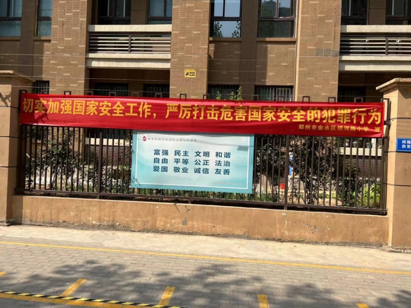 金水区银河路小学在4月11日早上的升旗仪式中开展以《遵纪守法,做一名合格的小公民》国家安全为主题的演讲活动,并利用班会等时间组织学生集体收看安全教育平台上推出的4·15国家安全专题课。在学校校门的显著位置,推出了国家安全教育日展板、校园外围墙栏杆悬挂横幅、校门口LED屏滚动宣传,使全体师生和家长了解全民国家安全教育日来历,深刻认识到每年的4月15日为全民国家安全教育日。