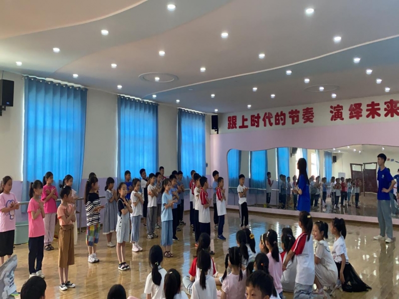 活动最后一天,王珂、崔彩云两位团队成员带着小朋友们共同学习健美操,为大家学习之余提供锻炼身体的效果。