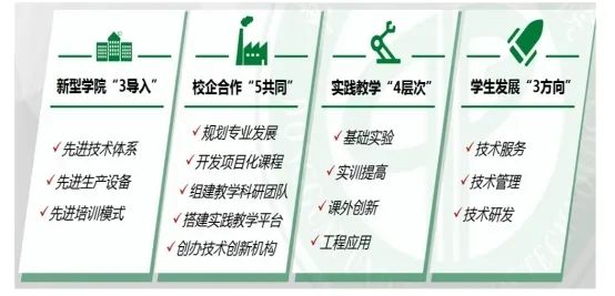 “五协同”促进产教融合应用型人才培养。一是聚焦企业人才需求,协同创新人才培养模式;二是聚焦企业产业发展,协同提高学科专业质量;三是聚焦企业骨干培养,协同培养应用型师资队伍;四是聚焦企业技术研发,协同开展应用型科技研发;五是聚焦企业设备利用,协同改善实践教学平台与环境,为应用型本科高校建设提供可复制、可推广的人才培养新模式。