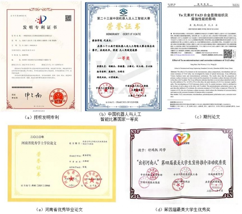 人才培养质量显著提升。依托产业学院,设立了“新能源与网联汽车”微专业,2022年3月微专业开始招生,并纳入高水平应用型人才培养工程。“能动天下,源启未来”国情观察团获国家级社会实践活动优秀团队,多名学生入选中国大学生自强之星、全国大学生创业英雄100强、出彩河南人20强;在全国学科竞赛获国奖106项、获“挑战杯 揭榜挂帅”专项赛全国三等奖;教师指导学生获授权国家专利86项,其中发明专利18项,实用新型专利68项;考研录取率30%以上,就业满意度98%以上。