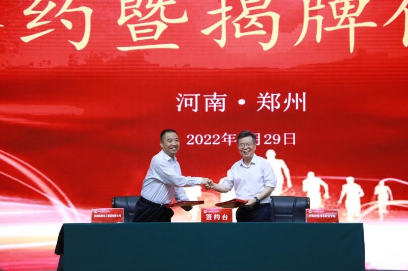 范晓伟代表集团与河南能源化工集团有限公司党委副书记刘同胜签署了校企合作协议,并为“大学生实习就业基地”、“人才培养基地”揭牌。