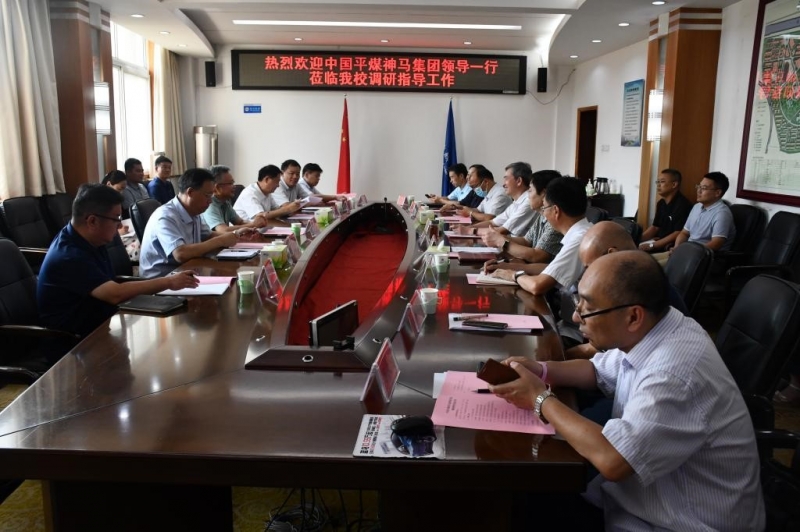 7月18日,中国平煤神马集团副总经理万善福、江俊富、王安乐、科技创新管理部总监范新川等一行到学校考察交流并洽谈光伏绿色能源综合应用实验室共建等事宜。校长王召东在行政楼第一会议室会见万善福一行,并进行座谈交流。副校长陈松涛,校长办公室、合作与发展规划处、科研处(学科建设办公室、研究生工作处)、土木与交通工程学院、能源与建筑环境工程学院、数理学院等部门负责人参加座谈。