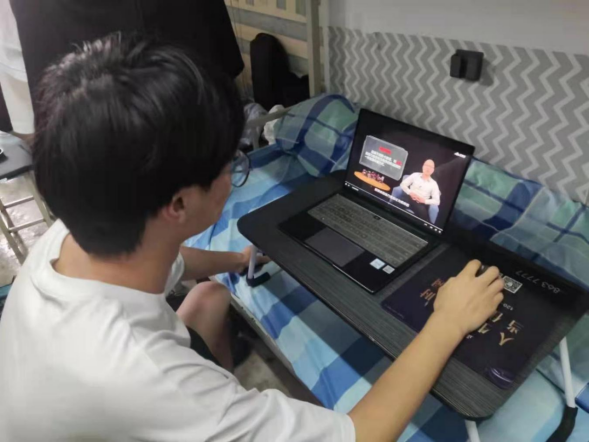 课堂上,老师们主动调整授课模式,增加互动,引导学生积极进行思考。同时,辅导员老师在宿舍区实时监督,保障线上授课顺利进行,学生认真学习。为了让学生在课余时间不枯燥,学校还为学生们提供线上共享课程,让同学们足不出户就可以享受到优质的教学资源。“线上、线下一个样,学习是自己的,不能因为老师看不到,就放松对自己的要求”,鹤壁能源化工职业学院高职21级机电一体化技术专业张超凡同学说。
