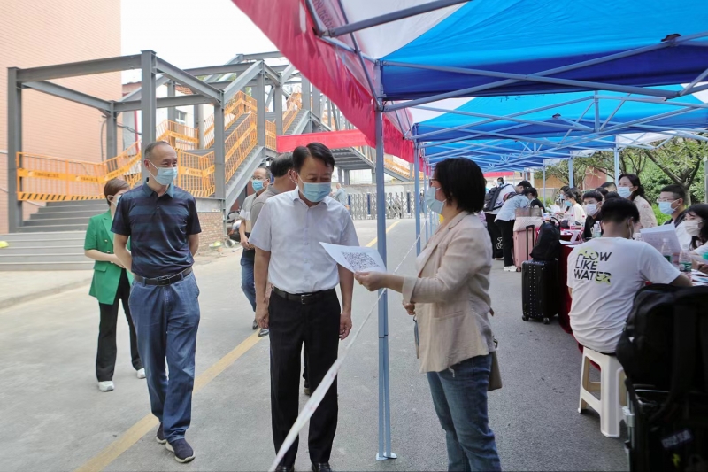 在南苑生活园区门口报到现场,李树伟详细了解学生返校报到流程、物品消杀情况及到校后学生封闭管理措施。他要求,学生管理部门和相关院部要认真研究上级疫情防控政策,从严从实做好各项工作。同时,要结合学生需要,在志愿服务、行李托运等方面提供更加人性化的服务。学生报到期间,要安排专人及时做好道路交通疏导,避免人员车辆拥堵。