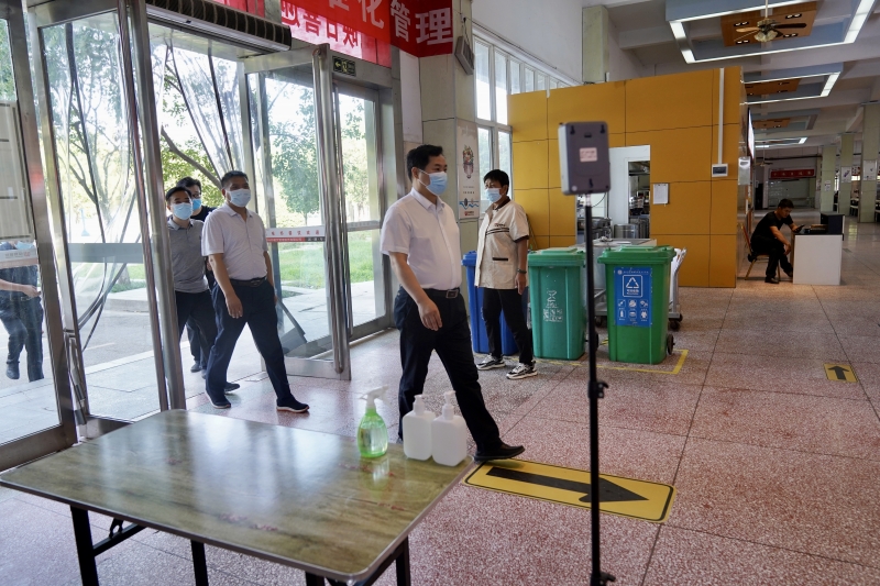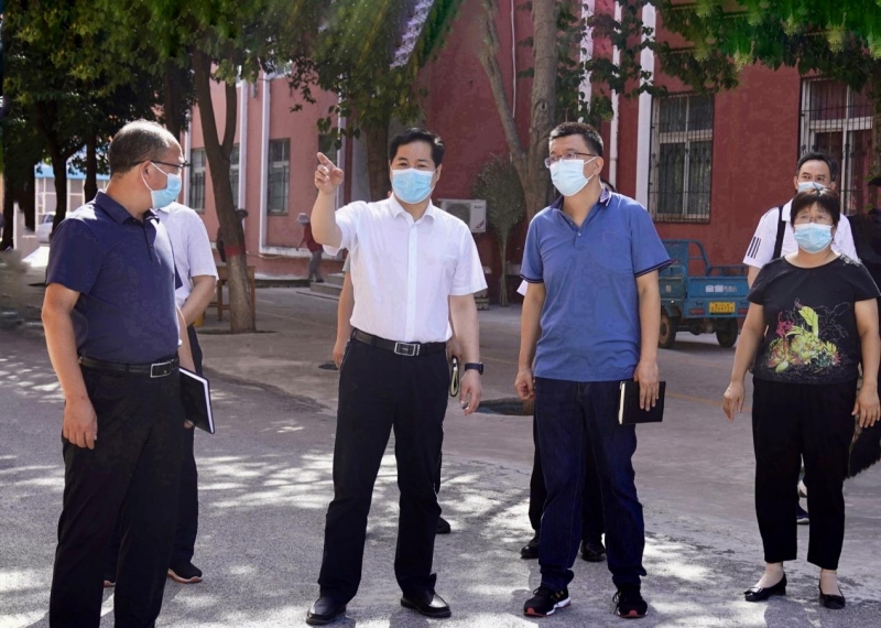为全面扎实有效做好疫情防控和2022年秋季学期开学工作,根据学校党委的统一部署和要求,9月5日,驻马店职业技术学院校长苏新留,党委副书记宋华民,党委委员、副校长李凤霞、刘道广,党委委员、纪委书记邵雪峰带领党政办、宣传统战部、学工部、后勤处等部门负责人深入南北校区,检查指导新学期开学前准备及疫情防控工作。