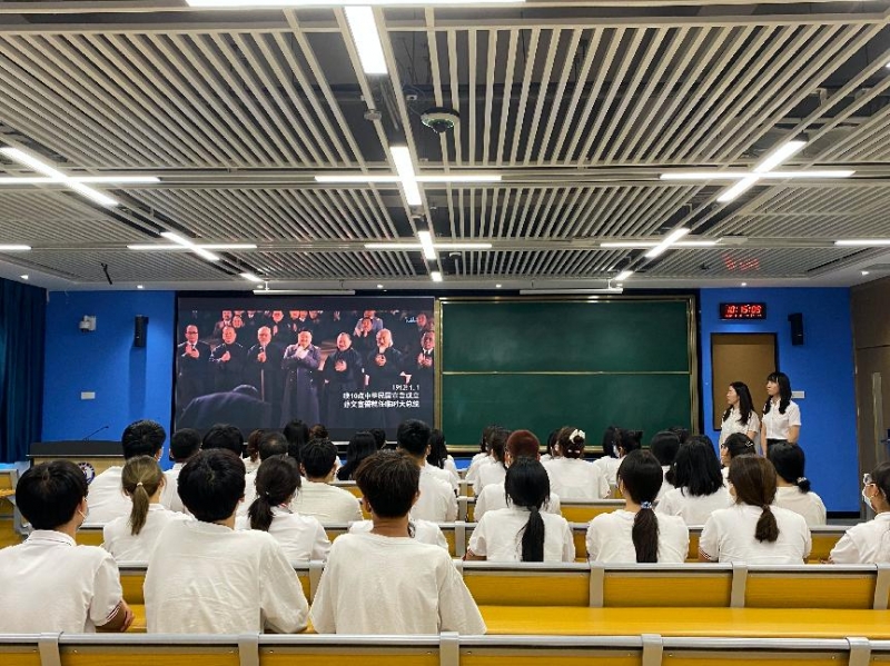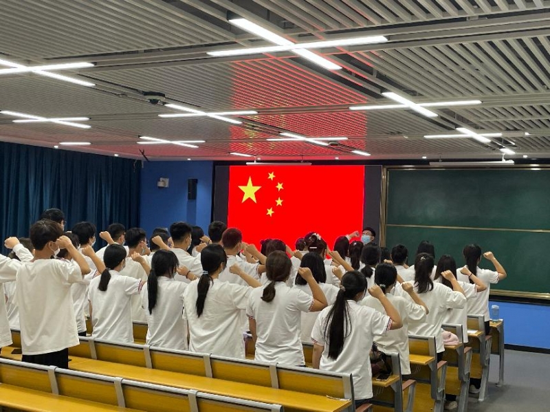 金融学院组织全体新生唱国歌,在国旗下宣誓,共同观看红色电影《建党伟业》。通过观影,学生们感受到了革命先辈不怕牺牲、英勇斗争的伟大建党精神。