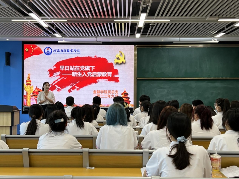 为了传承红色基因,培育红“芯”青年,让新生上好入党第一课,河南经贸职业学院金融学院于开学第一周开展了新生入学教育特色活动——入党启蒙教育,2022级全体新生参加。