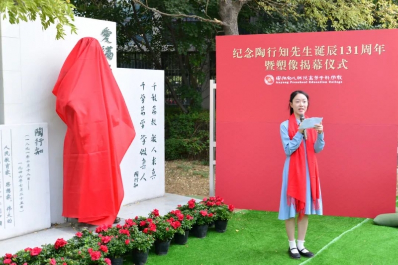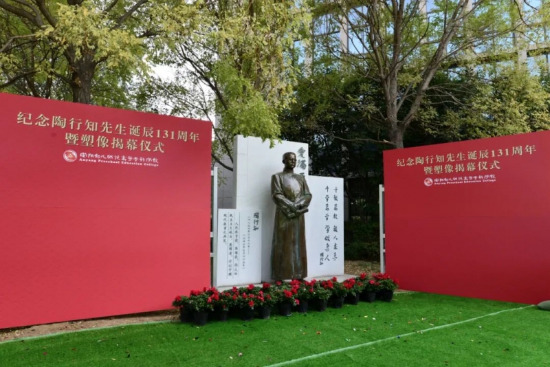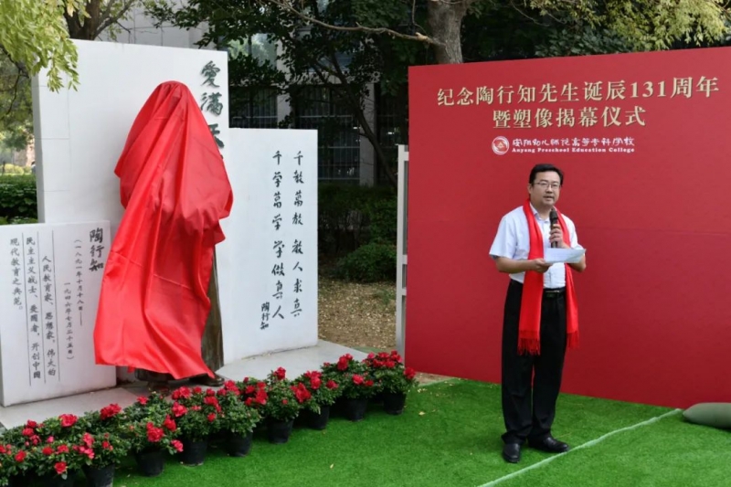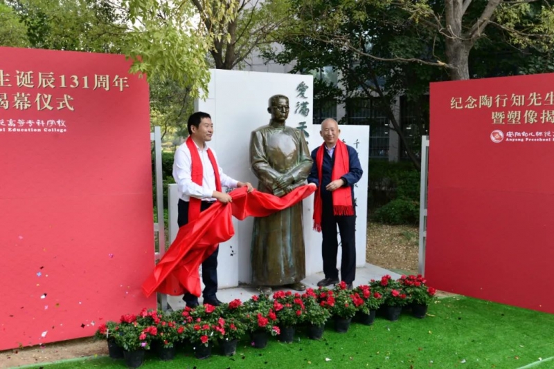 9月28日,安阳幼儿师范高等专科学校举行新建校园文化景观暨陈鹤琴先生、陶行知先生塑像落成揭幕仪式。