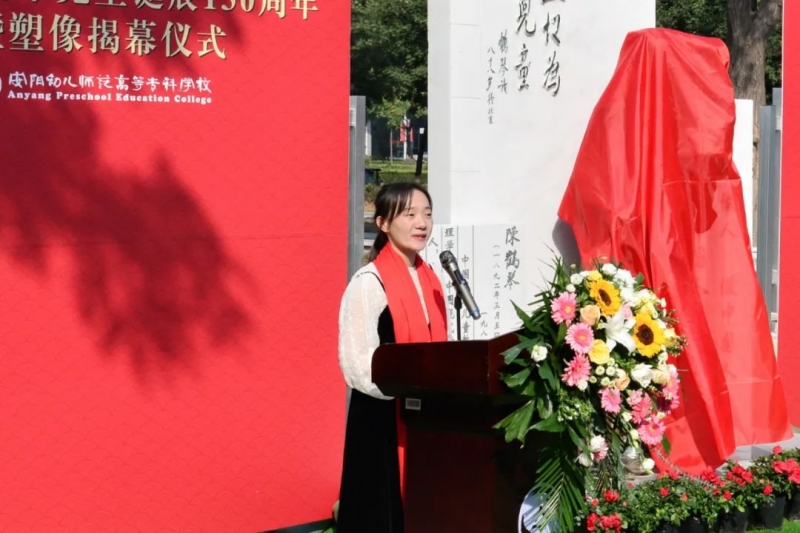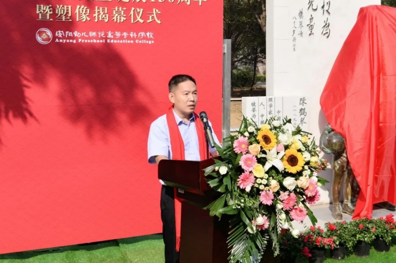 杨露指出,安阳幼专作为一所以培养幼儿教师、小学教师为主要特色的师范高等专科学校,在今天9月28日这个特别的日子——我国古代伟大的教育家、思想家孔子诞辰日,隆重举行陈鹤琴先生、陶行知先生塑像落成揭幕仪式更有纪念意义。希望塑像的落成成为学校文化传承的载体和平台,成为校园文化的“新地标”,吸引更多的师生前来瞻仰和学习,希望全校师生不忘为党育人初心、牢记为国育才使命,传承发扬好古今圣贤教育家的崇高精神和教育思想,坚守教师教育主责主业,勇于教育教学实践探索,大力弘扬“明德厚艺、贤行润身”的校训精神,为我国幼儿教育和初等教育的发展及安阳市建成“一个强市”,实现“八个领先”贡献安阳幼专力量。