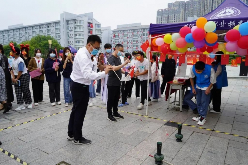 活动现场,校团委举办了内容丰富、形式多样的传统文化进校园、与传统文化面对面趣味游艺项目。校领导们与学子们亲切互动。射箭、投壶、猜灯谜、舞龙灯、踢毽子、花样跳绳、汉服表演等赢得了学校领导的赞誉,吸引了大批师生驻足观赏,校领导还与同学们频繁互动,气氛热烈,赢得了在场师生们一阵又一阵的热烈掌声。校园里红旗飘飘,气氛热烈,欢声笑语不断。