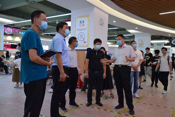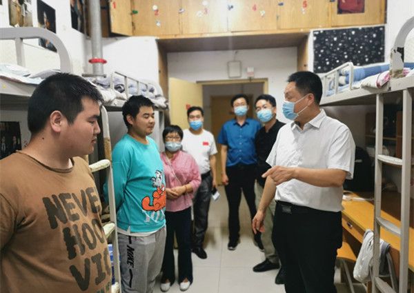 王四战一行在学生公寓,王四战一行查看和了解学生的生活起居情况,并深入学生宿舍与学生进行了细致交流。在校园商店,他向商店等场所负责人详细询问了产品的进货渠道、产品的价格、工作人员的防疫措施等相关的工作情况。在汽车工程学院、大学生活动中心和教师青年公寓,王四战要求大家加强场地管理,在保证师生安全的情况下为师生提供细致周到的服务。在学校餐厅,王四战对餐厅饭菜价格、食材的进货渠道、用气用电安全等方面进行了详细的询问,并要求餐厅经营人员确保食材进货渠道安全,确保餐厅用气用电安全,要为学生提供尽可能多的菜品,同时要合理定价,为学生在校园学习提供好生活保证。最后王四战一行来到危化品实验室,对学校实验室危化品的管理进行了详细询问,他要求实验室管理人员要切实落实危化品管理的相关制度,杜绝麻痹和侥幸心理,确保学校的实验室安全。