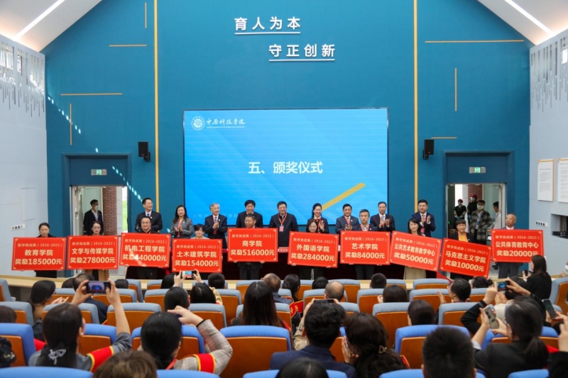 伴随着欢快的音乐,3位教学工作先进集体代表、37位优秀教师、12位优秀教育工作者和10位教学类成果奖励单位代表分别依次上台领奖并合影留念。