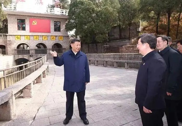 2022年10月28日,习近平总书记到河南安阳视察,参观林州市红旗渠纪念馆,实地察看红旗渠分水闸运行情况。