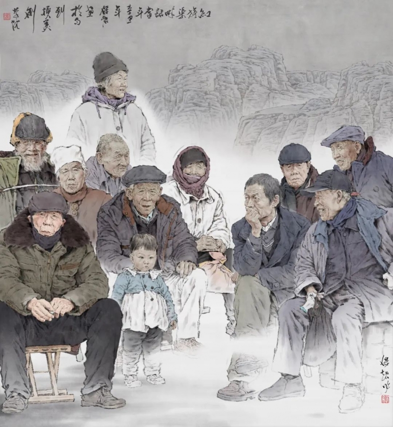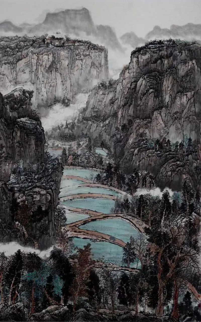 纪保超《红旗渠畔话当年》国画 100cmx100cm