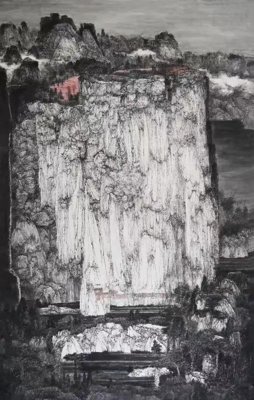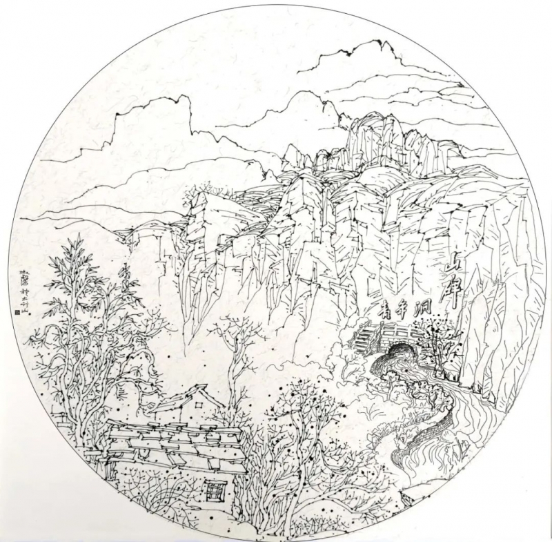 杨淑馨《村口的红旗渠》钢笔速写 45cmx45cm