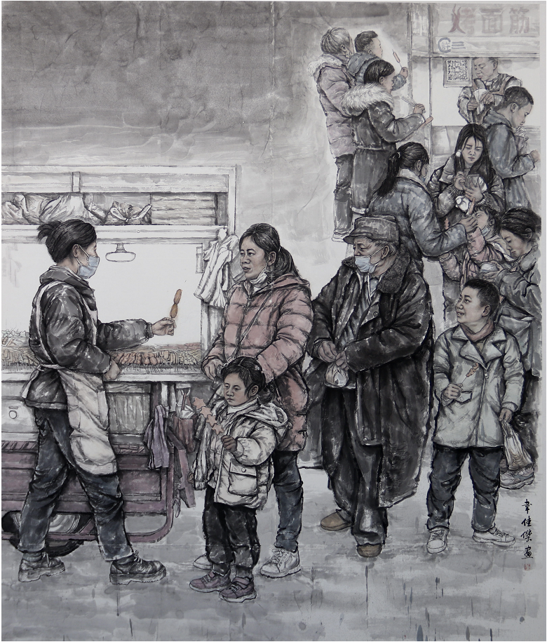 韦佳杰《渠畔夜市》国画 210cmx175cm