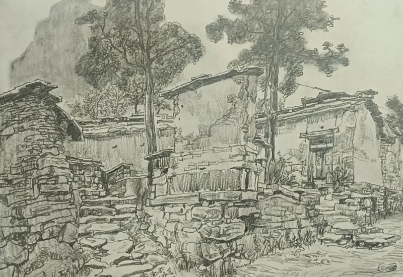 邓涛《红旗渠人家》写生之二 40cmx53cm