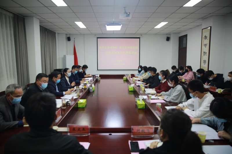 10月30日下午,许昌学院在办公楼第一会议室召开“解学生急难愁盼 建安全和谐校园”校领导与学生代表座谈会。副校长潘春彩出席座谈会,院长办公室、教务处、学生处、保卫处、校团委、后勤管理服务中心等职能部门主要负责人和各学院(书院)师生代表30余人参加了本次座谈会。座谈会由学生处处长周银超主持。