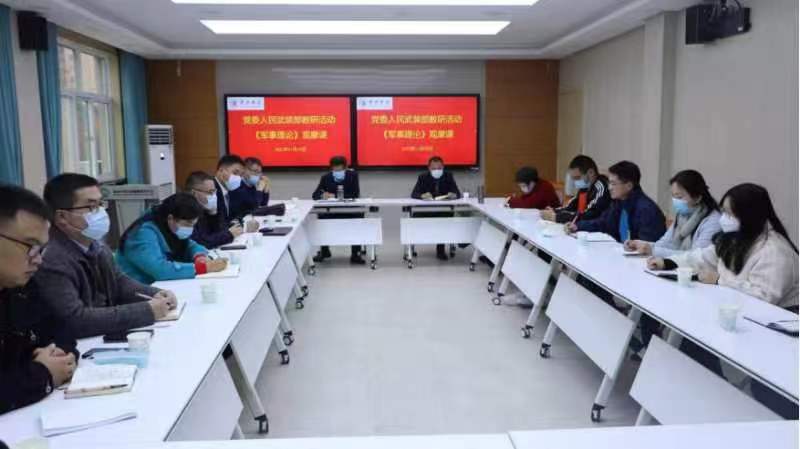 王冰对《军事理论》课程建设提出要求:一是要按照教研活动的要求,定期组织,做到教研有计划、计划中研究、研究中学习、学习中共享、共享中发展;二是要做好课程建设,利用教研活动集体开发丰富的教学资源;三是要在未来军事理论课授课中要准确把握课程的广度和深度;四是在课程思政时要恰到好处,润物细无声,以潜移默化的形式将思政融入课程。