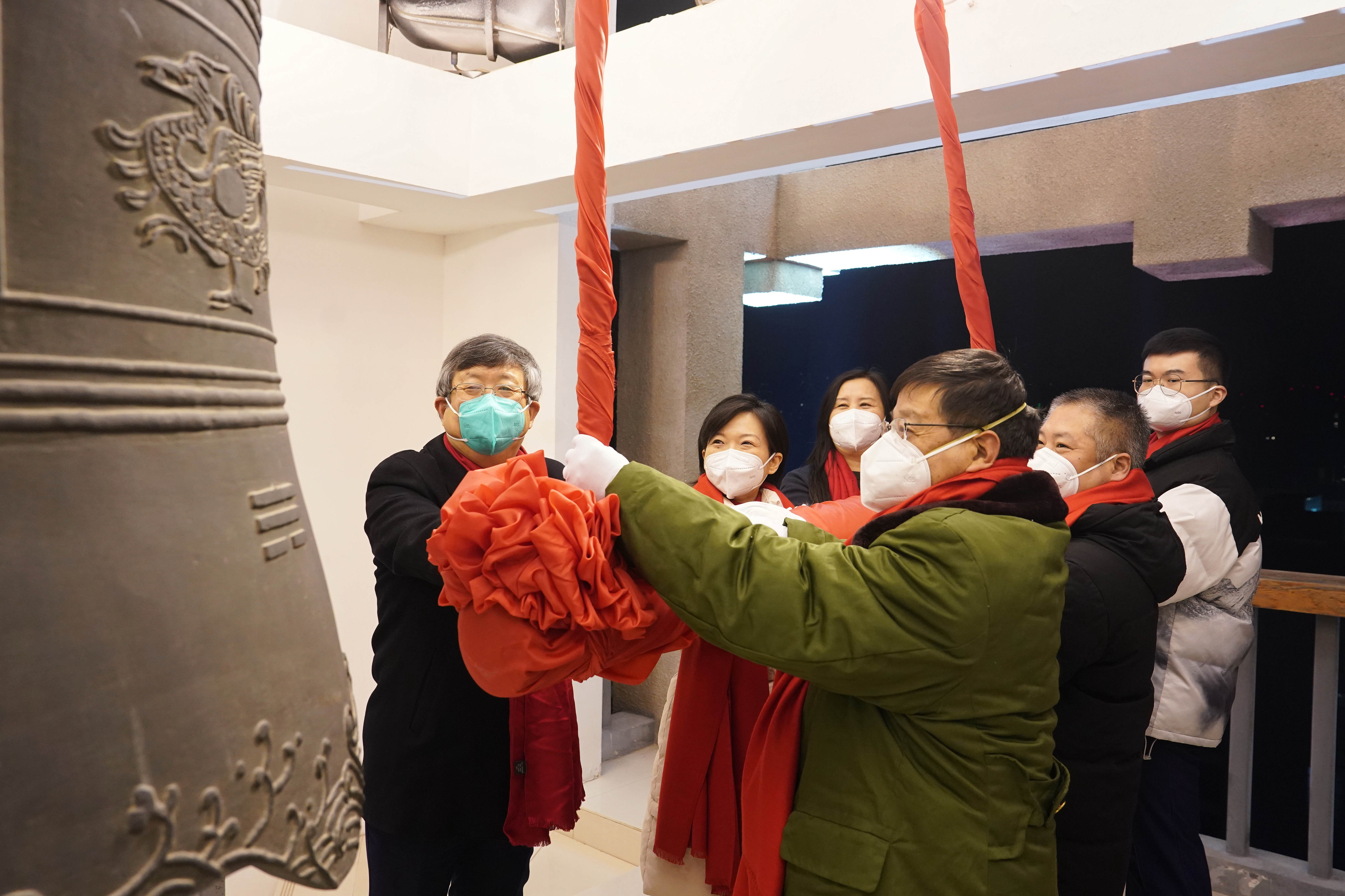 省政协副主席、校党委书记刘炯天,党委副书记、副校长常俊标与师生代表敲响新年钟声