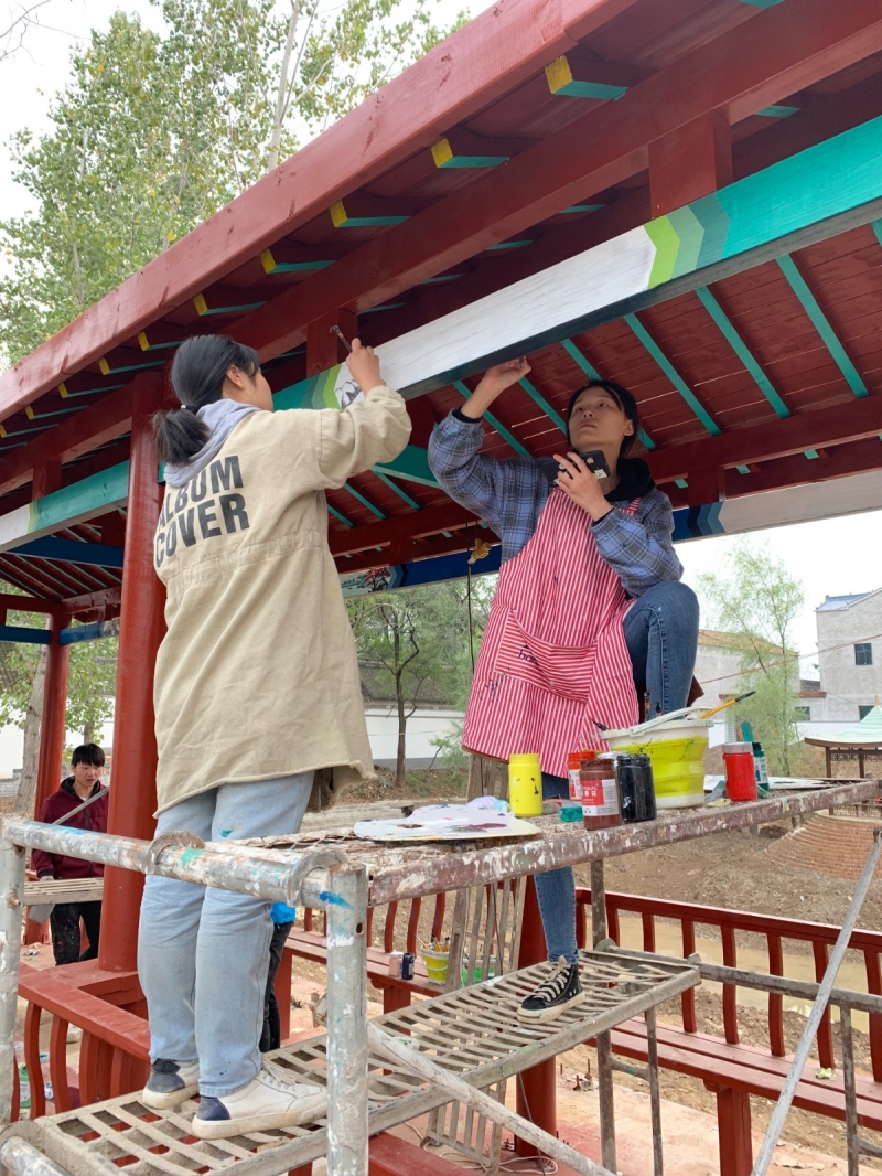 据悉,本次专题实践活动以《“以笔育人,以艺惠民”——综合提升人居环境,助力美丽乡村建设》为主题。该项目是2020年河南省普通高等学校“出彩中原”大学生社会实践专题活动的重点立项项目。该项目自稳步推进以来,商丘师范学院近百名青年学生投入到专题实践活动中。参与项目的青年学生,来自不同的专业,具有多学科的学业背景。据项目负责人李兴涛副教授介绍,本项目的实施,一是融历史学、建筑学、园林学、美术学、设计学、书法学、雕塑学、篆刻学、民俗学、社会学等诸学科于一体,为青年学生跨学科实践与协作提供了良好的实践载体;二是通过对地方民俗、传统建筑、地域民居的深入了解,有利于铸就青年学生厚重的家国情怀、奉献精神、创新观念与问题意识;三是有助于青年学生的理论学习与具体实践在融会贯通中多角度融合。