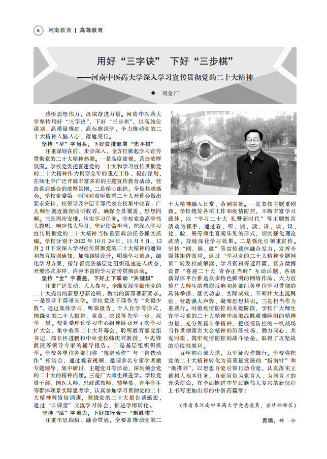 (作者系河南中医药大学党委委员、宣传部部长。原文刊载于《河南教育》(高等教育)杂志2023年第1期。)