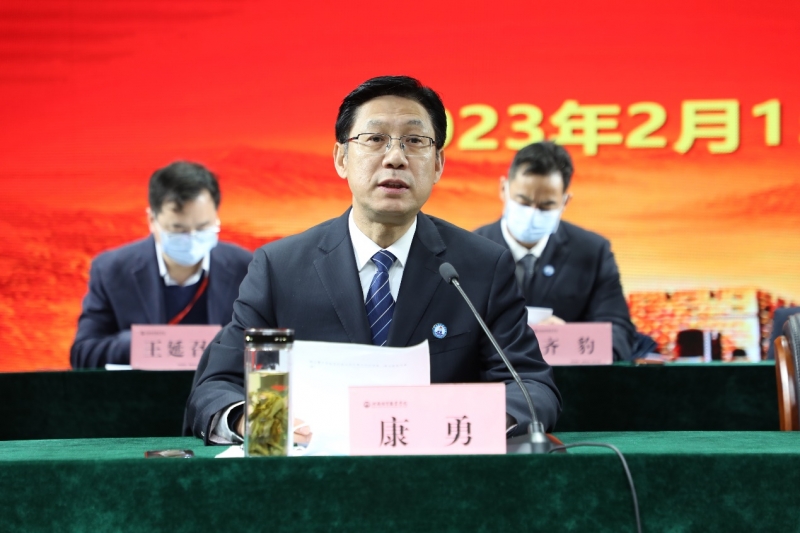 校长王新庆作题为《深入学习宣传贯彻党的二十大精神 全面提升关键办学能力 奋力开创高质量发展新局面》的学校工作报告。报告指出,2022年是学校深入推进“能力作风建设年”活动、高效统筹事业发展和疫情防控“双重考验”、深化教育综合改革取得显著成效的一年。这一年,党建引领硕果累累,三教改革再添新绩,国赛省赛开创新局,就业招生稳中有升,德智体美劳全面发展,合作共赢再创佳绩,学校治理提质增效,防疫保稳齐心协力。报告清醒地审视了目前存在的问题和不足,明确提出2023年工作的总体要求。围绕学校事业高质量内涵式发展要求,重点做好六个方面的工作:一是加强党的全面领导;二是全面推进改革创新;三是巩固教学中心地位;四是紧扣学生素质提升;五是彰显类型教育特色;六是加强基础能力建设。