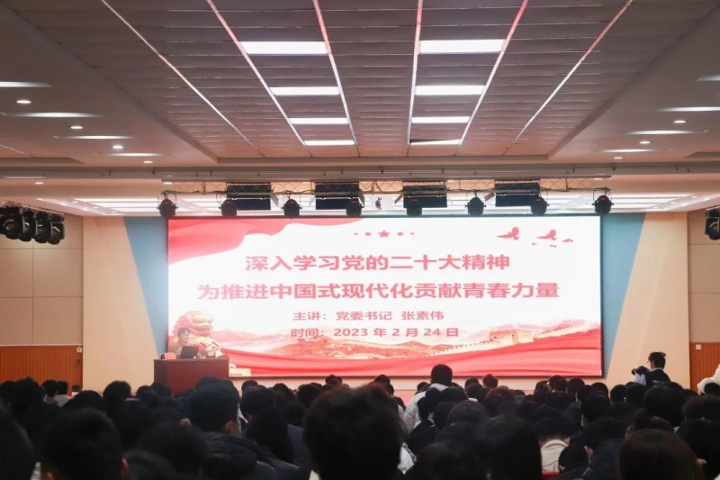 党委书记张素伟以《深入学习党的二十大精神 为推进中国式现代化贡献青春力量》为题,从深刻领悟“两个确立”的决定性意义、深刻把握中国式现代化的中国特色、我国发展具备长期稳定环境、新时代青年的担当与使命等四个方面,逐一诠释解读,把道理讲深、讲透、讲活,给学生们上了一堂沟通心灵、启智润心、激扬斗志的思政课。