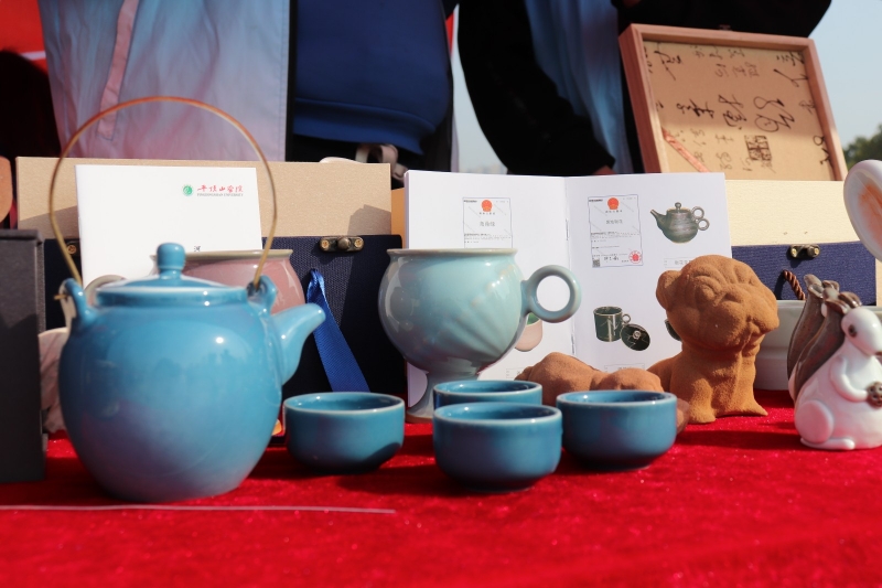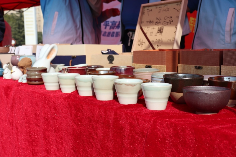 此次活动服务团展出鲁山花瓷、钧瓷、汝瓷等各式陶瓷作品百余件,形式多样、各具特色的瓷器都是老师和学生手工制作,在传统工艺的基础上注入具有现代感的元素,在色彩与器型上别具一格,典雅实用又不失意趣,得到了许多市民的认可。