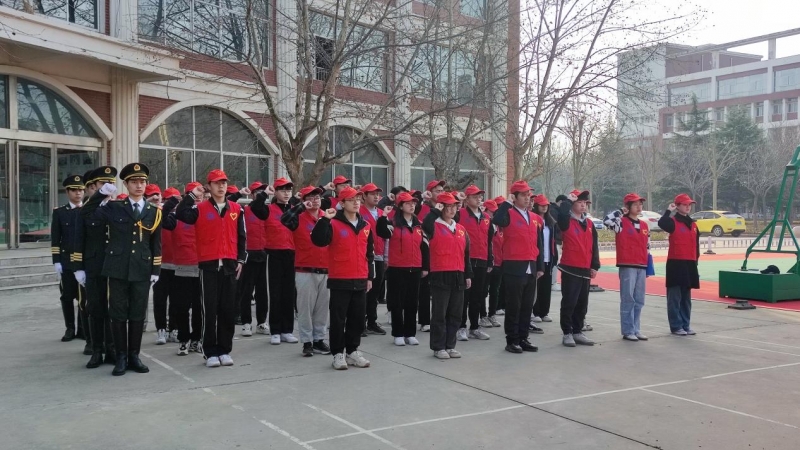 “一滴水,只有放进大海里才能永远不干!”。在第60个学习雷锋纪念日到来之际,河南理工大学鹤壁工程技术学院举行了“学习二十大 志愿新时代”雷锋月大型系列志愿者服务活动启动仪式。国防教育协会会长彭仁满、宣传部部长张旭、组织部部长安阳、协会干事梁浩楠担任出旗仪式出旗手。
