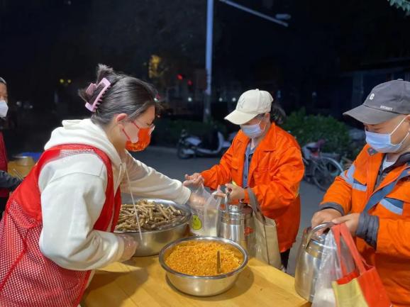 晨曦微现,文学院青年志愿者们已经集合在爱心粥屋内,在工作人员的指导下明确分工,迅速投入了工作:在发粥开始前,志愿者们积极配合后厨进行削山药、摆桌椅、搬粥桶等准备工作;在发粥过程中,有序地组织队伍、舀咸菜、盛粥、发放馒头和山药等。志愿者一丝不苟、认真细致工作态度,赢得“爱心粥屋”工作人员的一致好评。