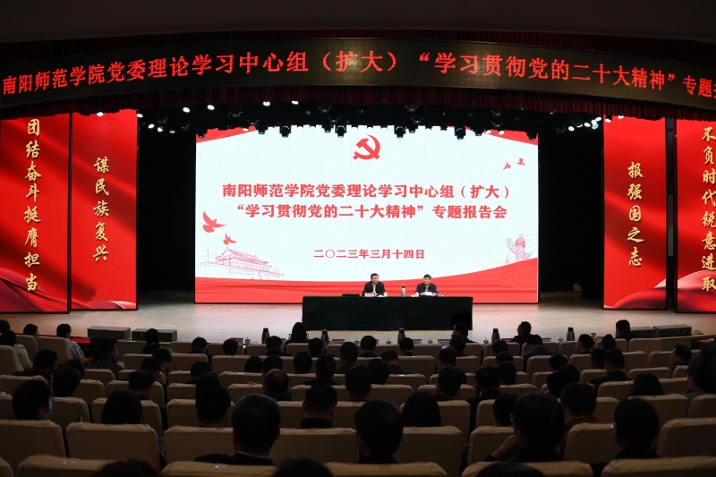 3月14日下午,南阳师范学院党委理论学习中心组(扩大)在音乐厅举行“学习贯彻党的二十大精神”专题报告会。中国资深驻外记者与知名国际问题研究专家席来旺教授应邀来校作“学习贯彻党的二十大精神”专题辅导报告。全体校领导,全体中层干部和思政课教师、辅导员、学生代表参加。校党委书记卢志文主持报告会。