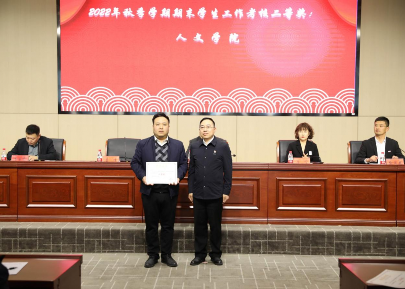 党委宣传部部长、党委统战部部长李书锋宣读《关于表彰商丘学院2022年度学生工作先进个人的决定》及《商丘学院第十届辅导员素质能力大赛获奖单位及个人的决定》。