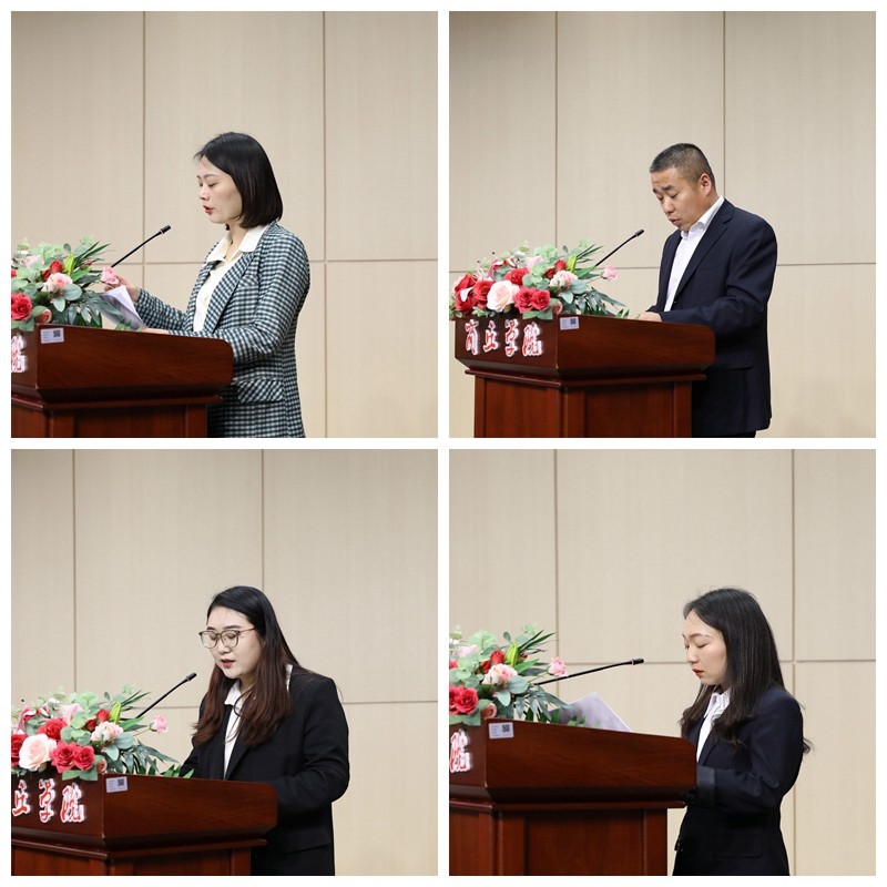 计算机工程学院党总支书记曹婕、艺术学院团总支书记秦军长、人文学院思政辅导员徐冉及经济管理学院思政辅导员赵倩分别作代表发言。