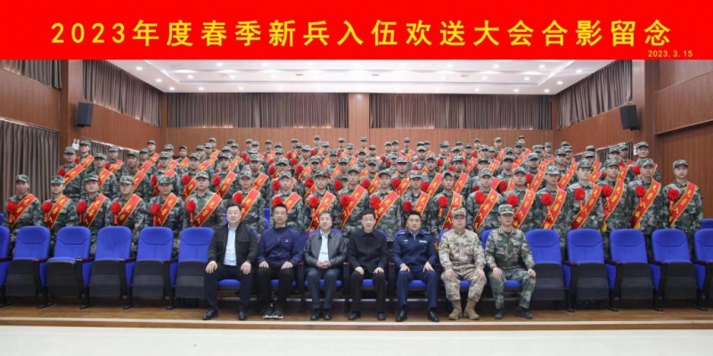 会议结束后,与会各位领导与入伍大学生话别并合影留念。