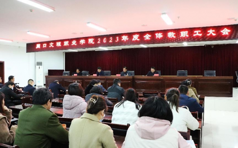 3月16日,周口文理职业学院召开2023年度全体教职工大会,回顾总结上一年度工作,安排部署本学年度重点工作任务,进一步统一思想、凝心聚力、再鼓干劲,推动周口文理职业学院高质量发展。校党委书记宋晓东,党委副书记、校长于秀邦出席会议并作重要讲话,副校长程运平、韩广飞出席会议,全体教职工参会。大会由程运平主持。