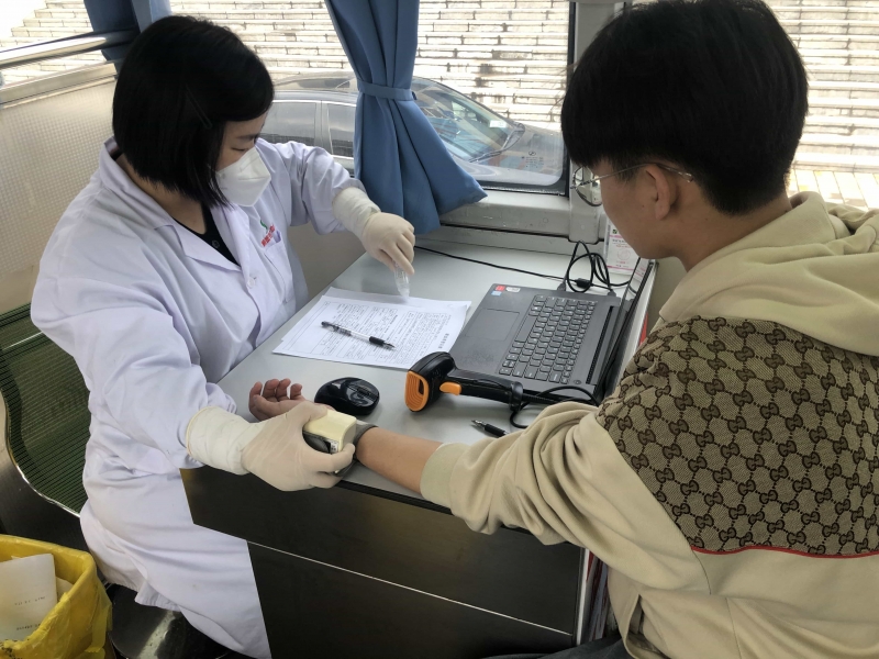 活动现场,学院青年志愿者协会的同学们早早来到献血车停放地点,帮助中心血站工作人员维持现场秩序、指导大家填写献血登记表,还贴心准备了白糖水。尽管天气微凉,但献血的师生们热情不减,很早就来到献血车前排队,大家耐心等候,有序进行填表、体检、化验、验血、献血等流程。