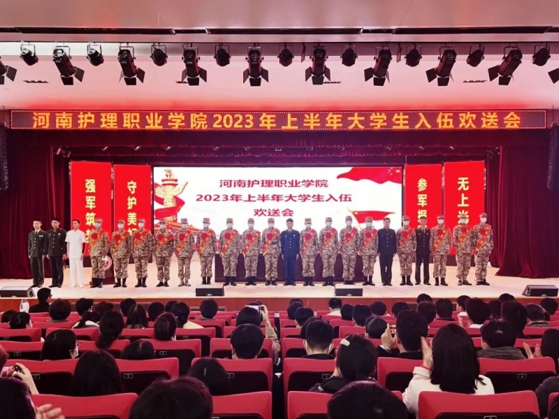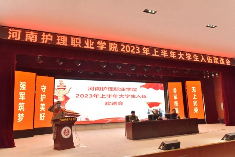 “红色基因赓续传,河护学子赴新程。”3月15日下午,河南护理职业学院在学术报告厅二楼举行2023年上半年大学生入伍欢送会。党委书记杜天信、副院长王家桥出席会议,学工部全体人员、全体专兼职辅导员、退役复学学生、学生代表共计800余人参加会议,会议由武装部副部长金志利主持。