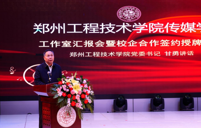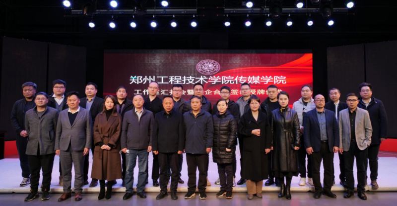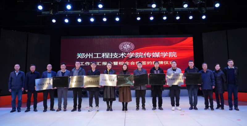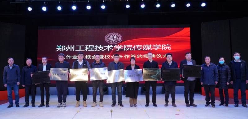 3月17日下午,郑州工程技术学院传媒学院在金河校区演播厅举办工作室汇报会暨校企合作签约授牌仪式。校党委书记甘勇,校企合作处处长刘晓安、传媒学院党总支书记黎峰、院长张帅旗以及校企合作处、传媒学院部分老师及各工作室学生成员参加了活动。活动还特别邀请19家校企合作企业负责人到场参与校企合作签约授牌仪式。