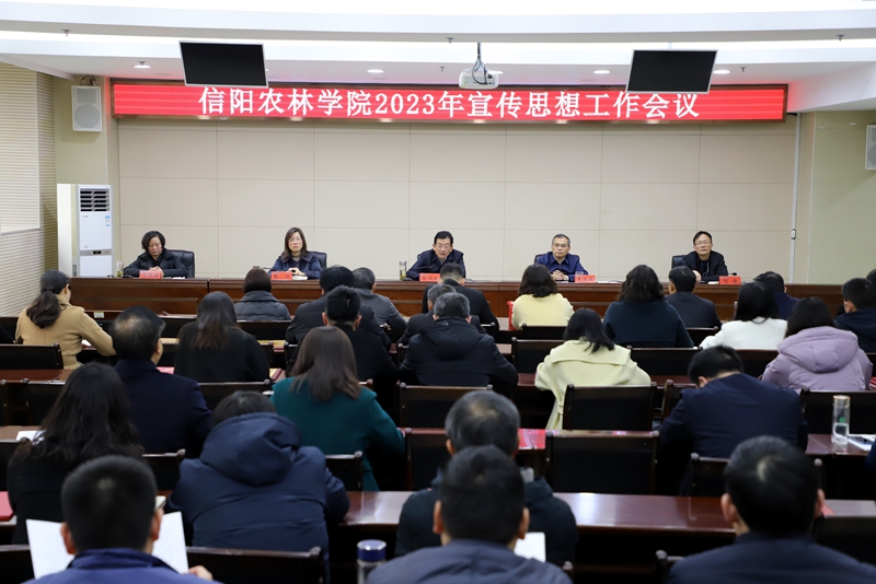 3月21日,信阳农林学院在综合办公楼一楼会议室召开2023年学校宣传思想工作会。党委书记余作斌,党委副书记王庆兵,党委委员、统战部长张婷,党委委员、组织部长何涛,宣传部长简频捷以及各党总支书记、各职能部门主要负责同志参会。会议由王庆兵主持。