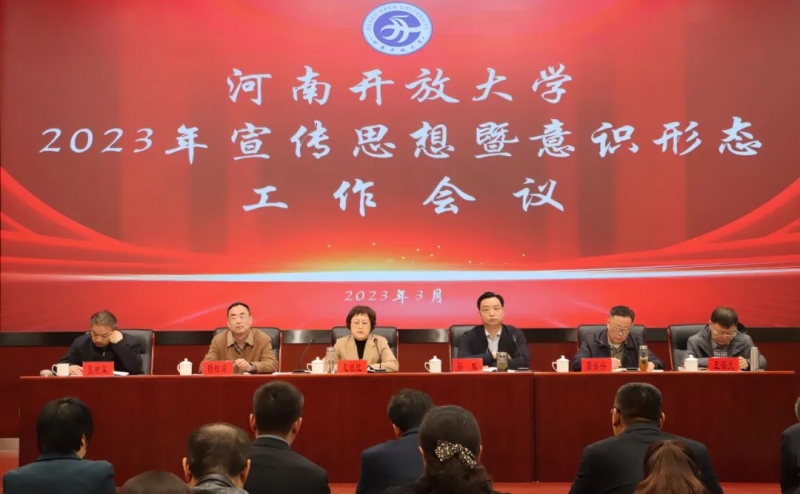 为深入学习贯彻习近平新时代中国特色社会主义思想和党的二十大精神,贯彻落实全省教育系统宣传思想工作会议精神,3月21日,河南开放大学在行政楼二楼会议室召开2023年宣传思想工作暨意识形态工作会议,回顾总结2022年工作,研究部署2023年工作。河南开放大学领导赵继红、孙斌、杨松璋、周海兴、张树军、王海天出席会议。学校各部门负责人、受表彰的获奖代表等70余人参加会议。会议由党委副书记、校长孙斌主持。