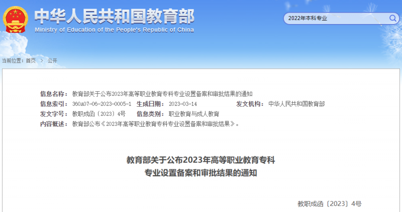 近日,根据《教育部关于公布2023年高等职业教育专科专业设置备案和审批结果的通知》(教职成函[2023]4号)文件,濮阳医学高等专科学校预防医学专业顺利通过审批,2023年起我校具有了该专业的招生资格。至此,该校专业总数増至22个,其中国控专业3个。