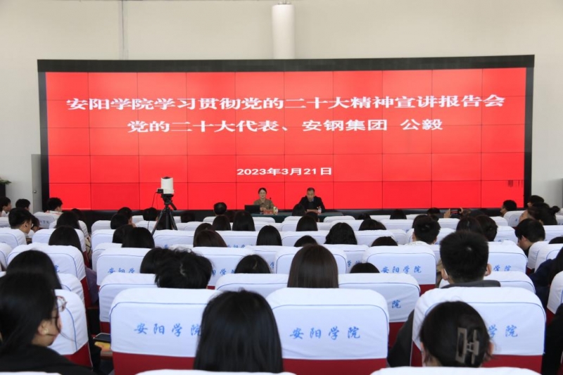 今年是学习贯彻党的二十大精神的开局之年,为推动党的二十大精神深入基层、深入人心,3月21日,安阳学院邀请党的二十大代表、安钢集团公毅同志进校开展党的二十大精神宣讲。宣讲会以线上线下方式召开,安阳校区设主会场,原阳校区设分会场。宣讲会由安阳学院副校长马保建主持。