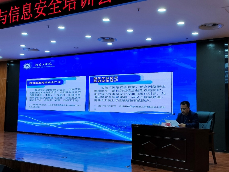 为进一步做好学校网络与信息安全工作,强化各单位网络信息安全意识,提高网络信息安全工作能力和水平,3月16日下午,河南工学院召开网络信息与安全培训会,会议由信息办和宣传部组织召开,学校各部门网络信息员参加。