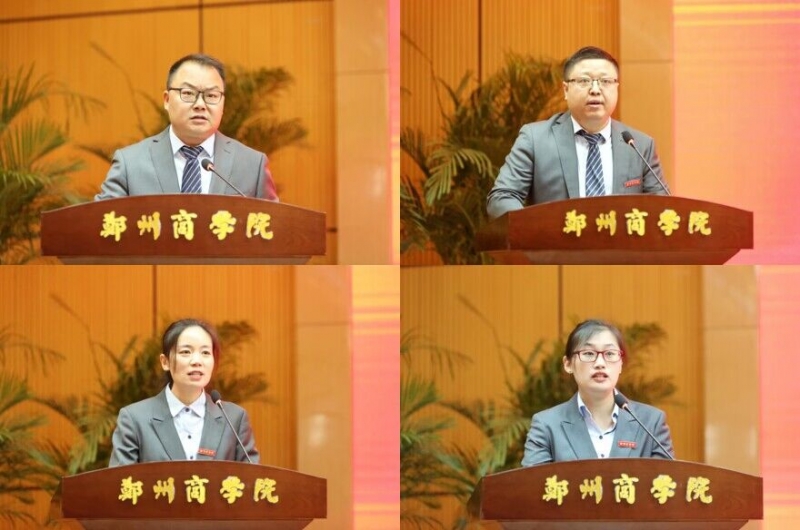 教学工作先进单位代表、外语学院院长邱培磊,科研工作先进单位代表、工商学院院长杨松柏,教学工作先进个人代表、工商学院教师冯艳娟,科研工作先进个人代表、建工学院教师刘玉娟,分别围绕教学工作和科研工作体会与感想作了交流发言。