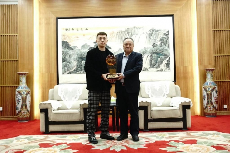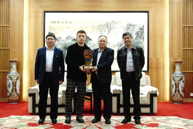 3月29日,郑州大学体育学院学生,2023CBA全明星周末扣篮大赛冠军杨浩返回母校,院党委书记张绍通、 院长张大超,副院长张原和相关部门负责人在校史馆贵宾室欢迎杨浩回家。